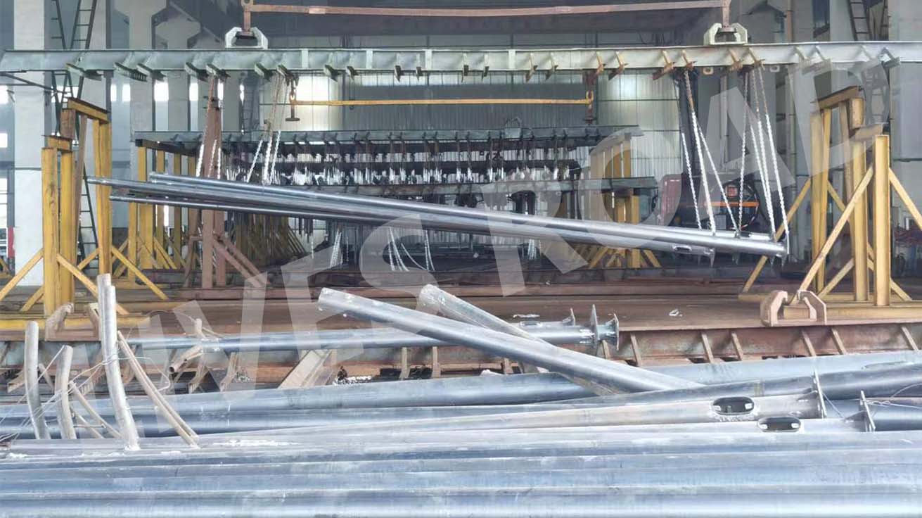 我公司所生產的桿件通過精心焊接,能達到設計的光潔度、垂直度,保證無扭曲,無氣孔,無焊渣、無油污,通過熱浸鍍鋅防腐處理符合國標要求。