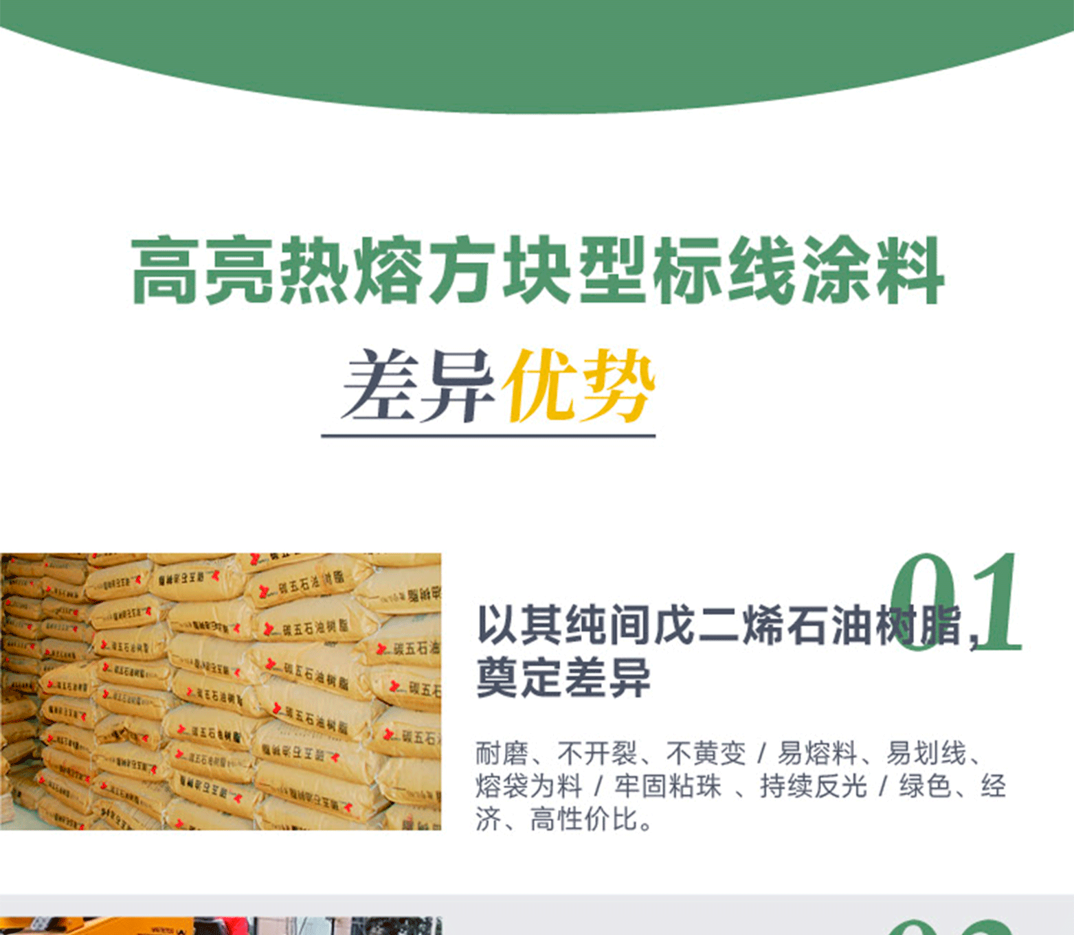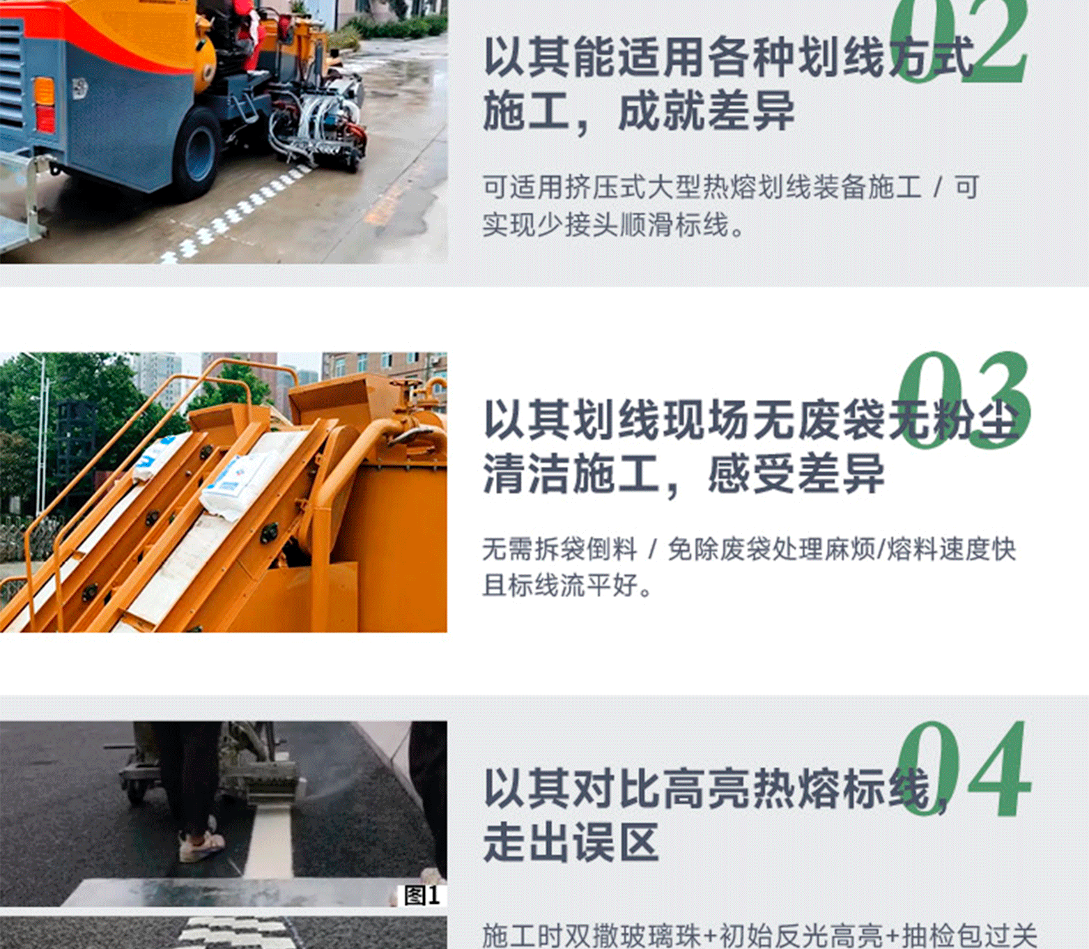 涂料特點:高保光保色性,耐候性能強,高韌性耐磨抗開裂,無味環保,耐-25℃低溫和60℃高溫。標線特點:高保光保色性,耐候性能強,高韌性耐磨抗開裂。