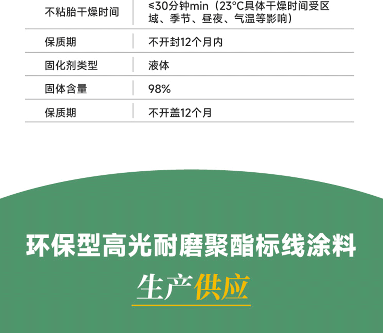 環保型高光耐磨聚酯標線涂料,由柔性聚酯樹脂、復配顏填料及多種功能性助劑,經特殊工藝制成。該涂料具有優異的黏接性、耐候性、耐磨性、結構穩定性及施工便捷性。