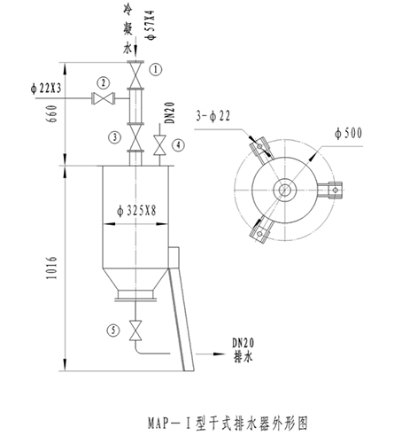5.排水器按管法蘭為JB81-94,PN1.6DN50。