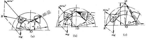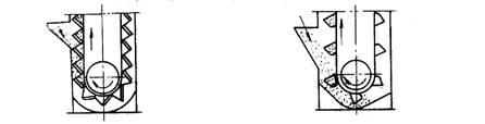 斗提機在頭部卸載。卸載的形式有三種,即離心式(圖a)、離心—重力式(圖b)及重力式(圖c)。