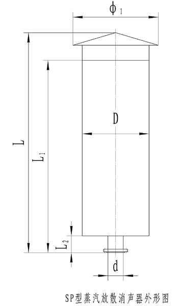 注:本系列消聲器額定排汽壓力按1.3MPa設計的,如排汽壓力為0.8MPa,選用消聲器應比排放管徑大一級;排汽壓力為2.0MPa時應比排放管小一級選用。