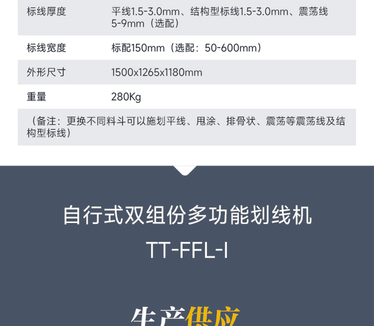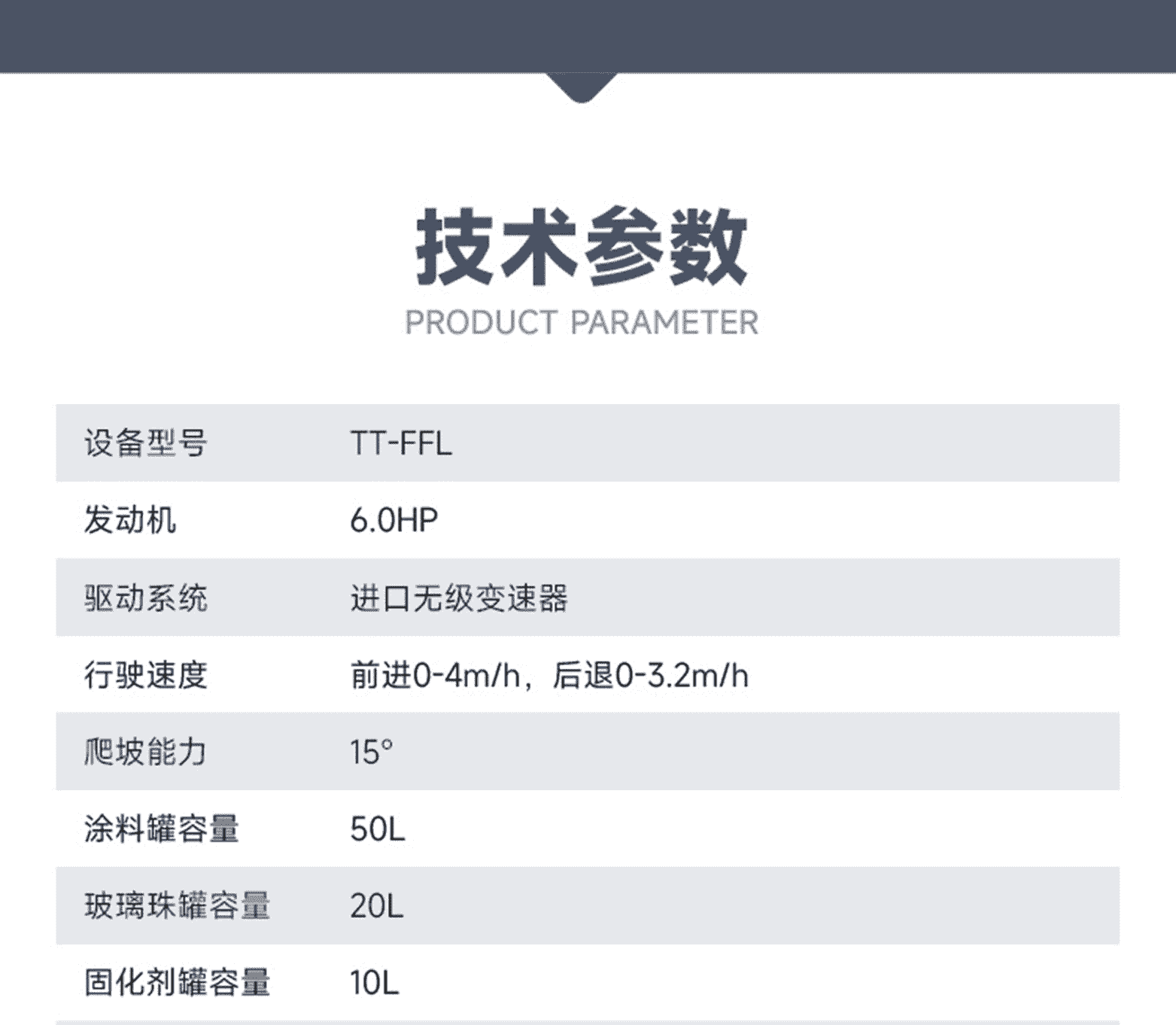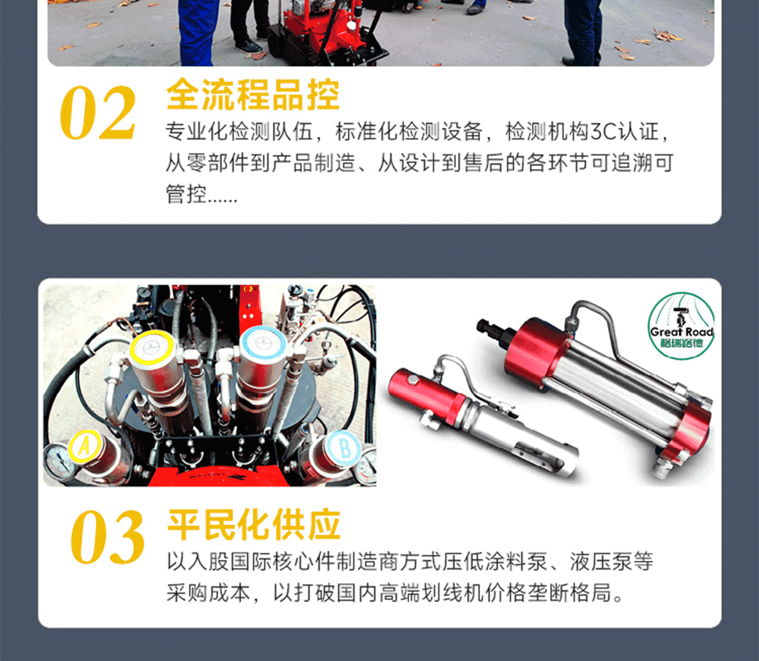 核心品質:進口變速器、本田發動機、全車加厚耐腐蝕電泳涂裝。主要特點:可選裝多種線型料斗,線型整齊美觀,易維護。智能自動控制器,可選擇多種線型,達到線型精準化施劃
