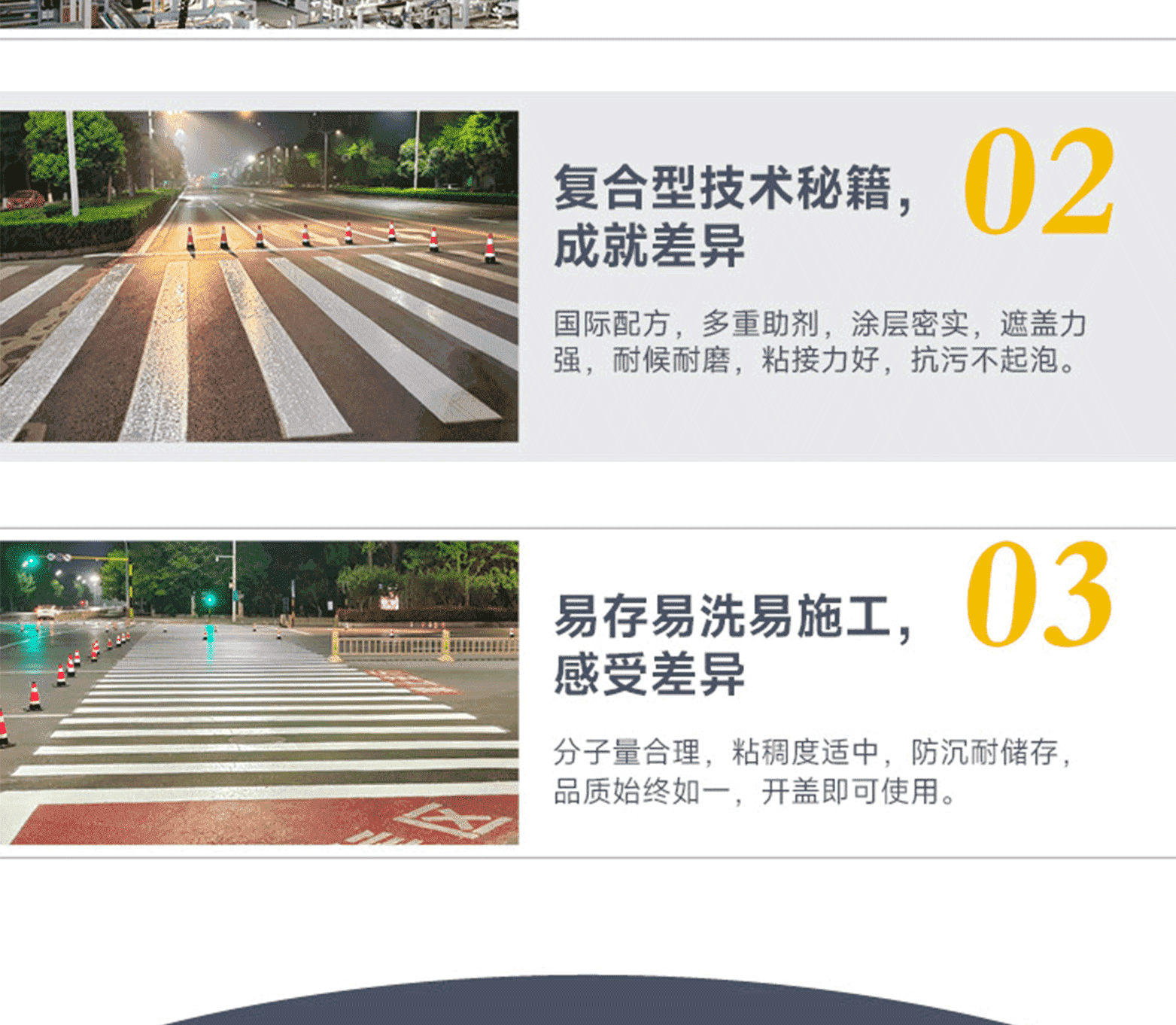 ?專家測評:標(biāo)線品質(zhì):進口基料、金紅石鈦白/有機鉻黃顏料、多重優(yōu)質(zhì)助劑、復(fù)合工藝、標(biāo)準(zhǔn)化檢測;標(biāo)線特點:色澤純正、覆蓋性高、施工性好、耐磨耐黃變、抗沉不起泡、品質(zhì)一致性高;