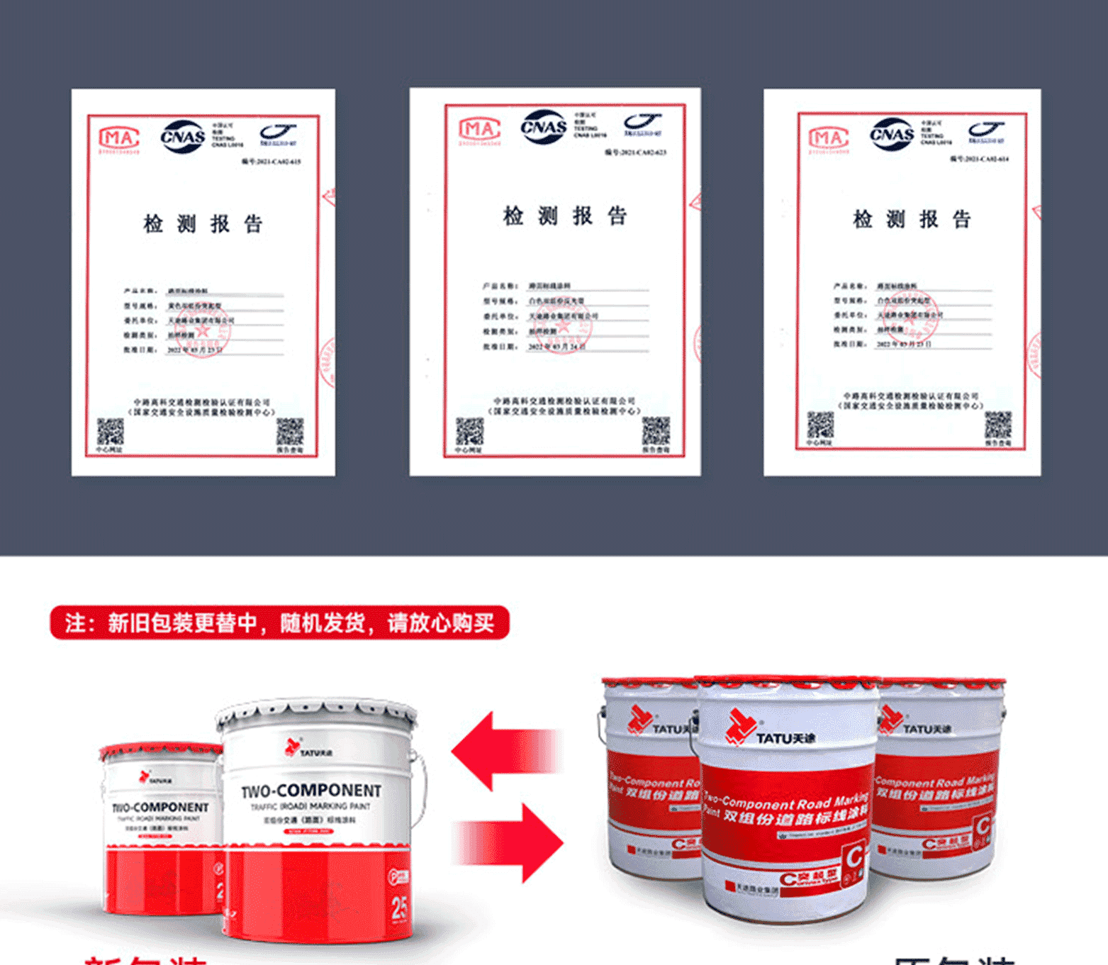 標線品質:進口基料、氯化鈦白/有機黃顏料、多重進口助劑、復合工藝、標準化檢測;標線特點:涂料細膩、抗污性強、覆蓋性高、耐磨耐候、施工性好、抗沉不起泡;